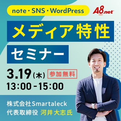 A8.net全般のお知らせ、アフィリエイトに役立つ情報を更新しています